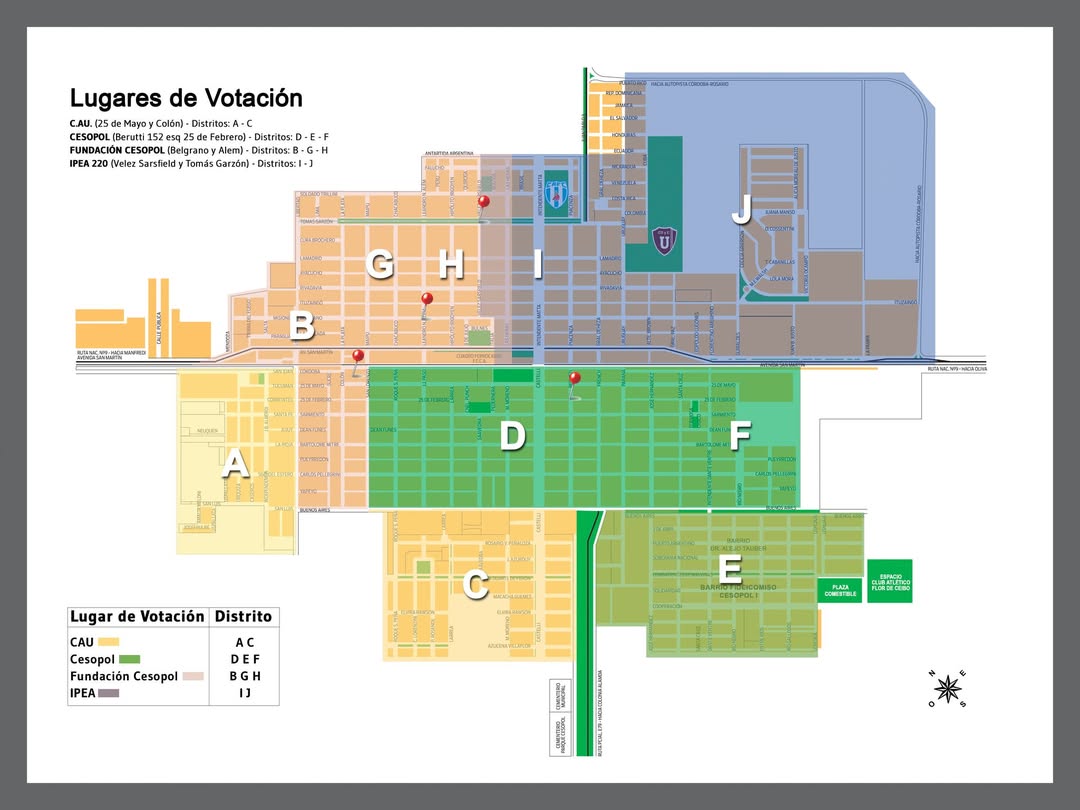 Estos son los 10 distritos en los cuales se divide la ciudad para chequear a cual perteneces, y además, podés ver los 4 lugares de votación.